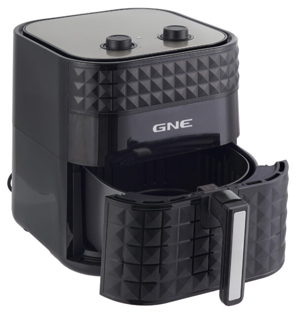 Experience a healthier way of frying with the Gaba National Air Fryer. With energy-efficient air frying technology, it uses no oil or butter for up to 80% fewer calories, producing perfectly cooked food every time with less fat. The digital controls and built-in timer allow you to cook your food to perfection.
